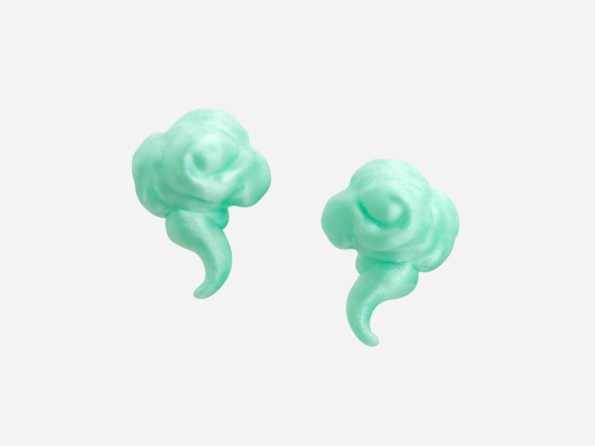 | The auspicious clouds have long been regarded as a symbol of holiness and blessings in Chinese culture. For thousands of years, the cloud motif has been used in furniture, clothing, and jewelry design, especially in the Forbidden City. These earrings are 3D printed with fully-recyclable, plant-based material, and supported by titanium backings. For more, visit https://paleglaze.etsy.com |