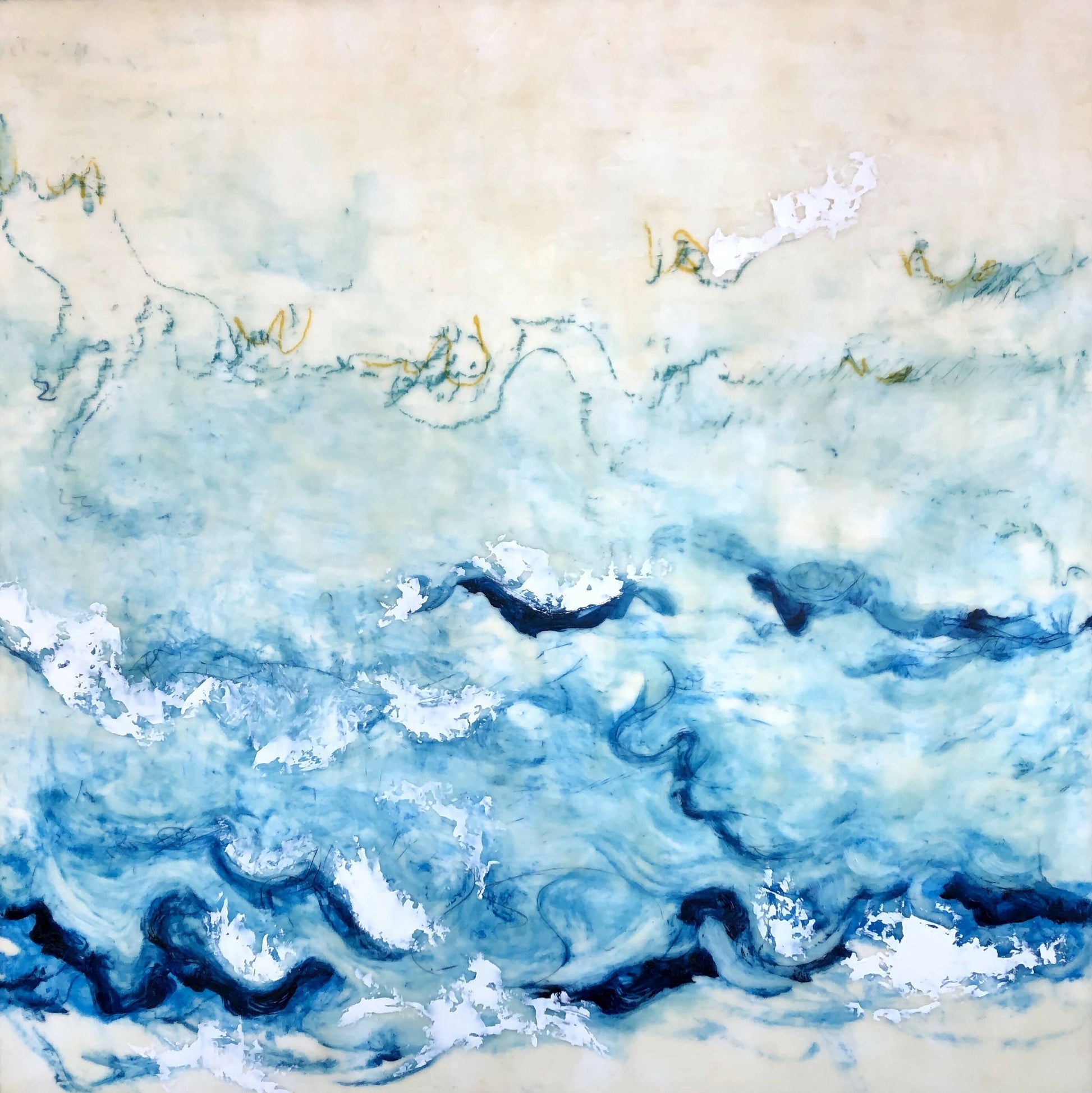 | Oil, beeswax, encaustics on panel. |