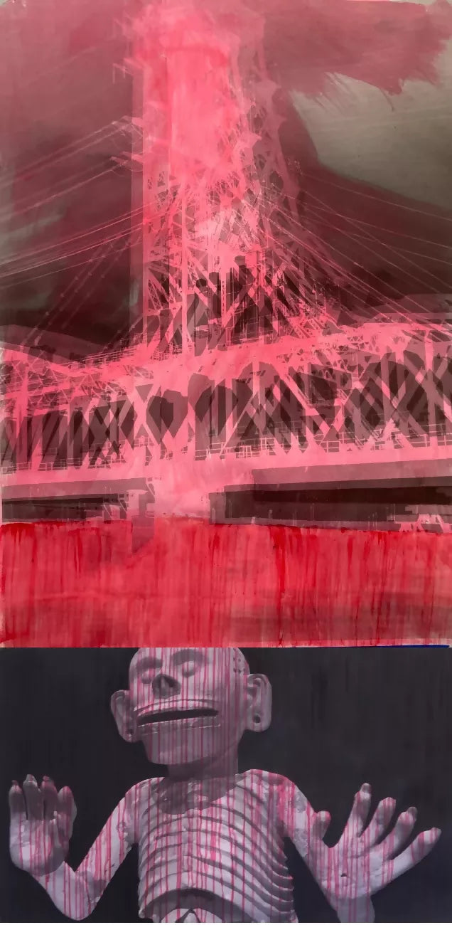 | Photographic image with interweaved with acrylic wash and charcoal |